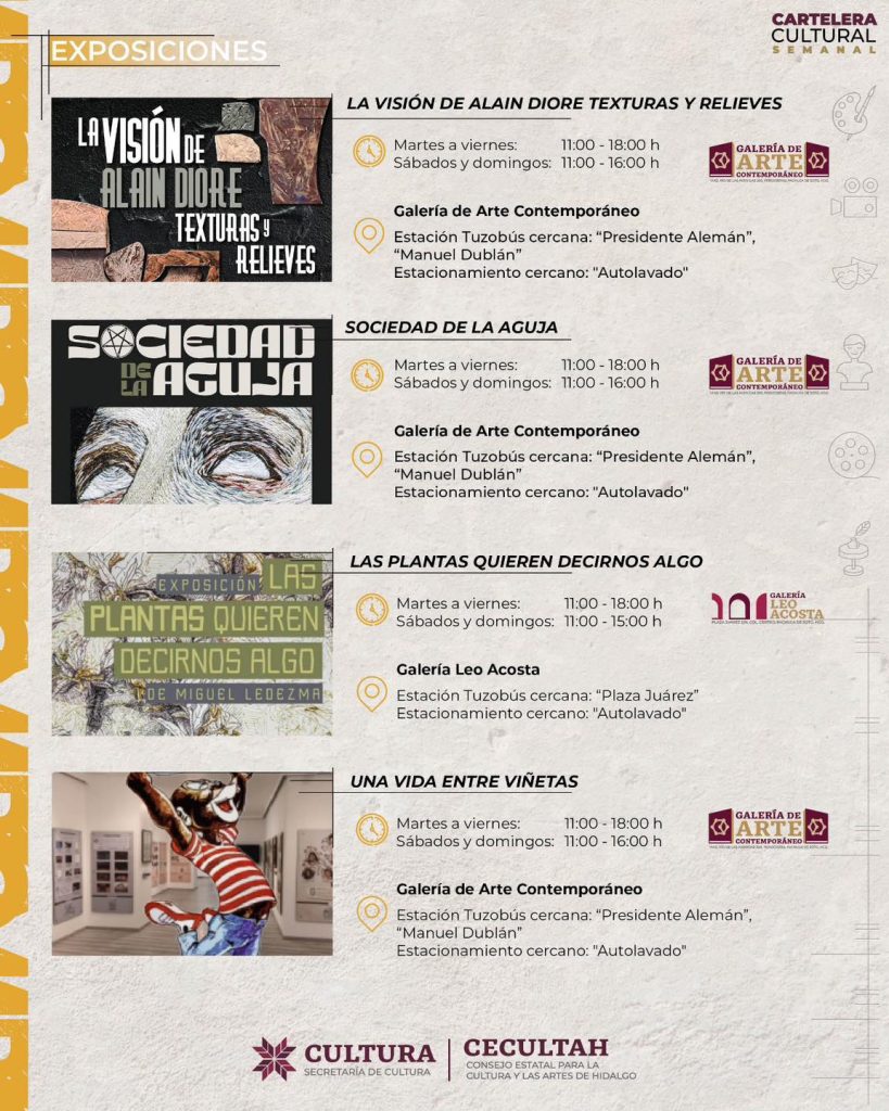 La Secretaría de Cultura del Estado de Hidalgo presenta la exposición “Las plantas quieren decirnos algo”, del artista Miguel Ledezma, una propuesta contemporánea que invita a reflexionar sobre la relación entre las personas y la naturaleza en entornos urbanos.
